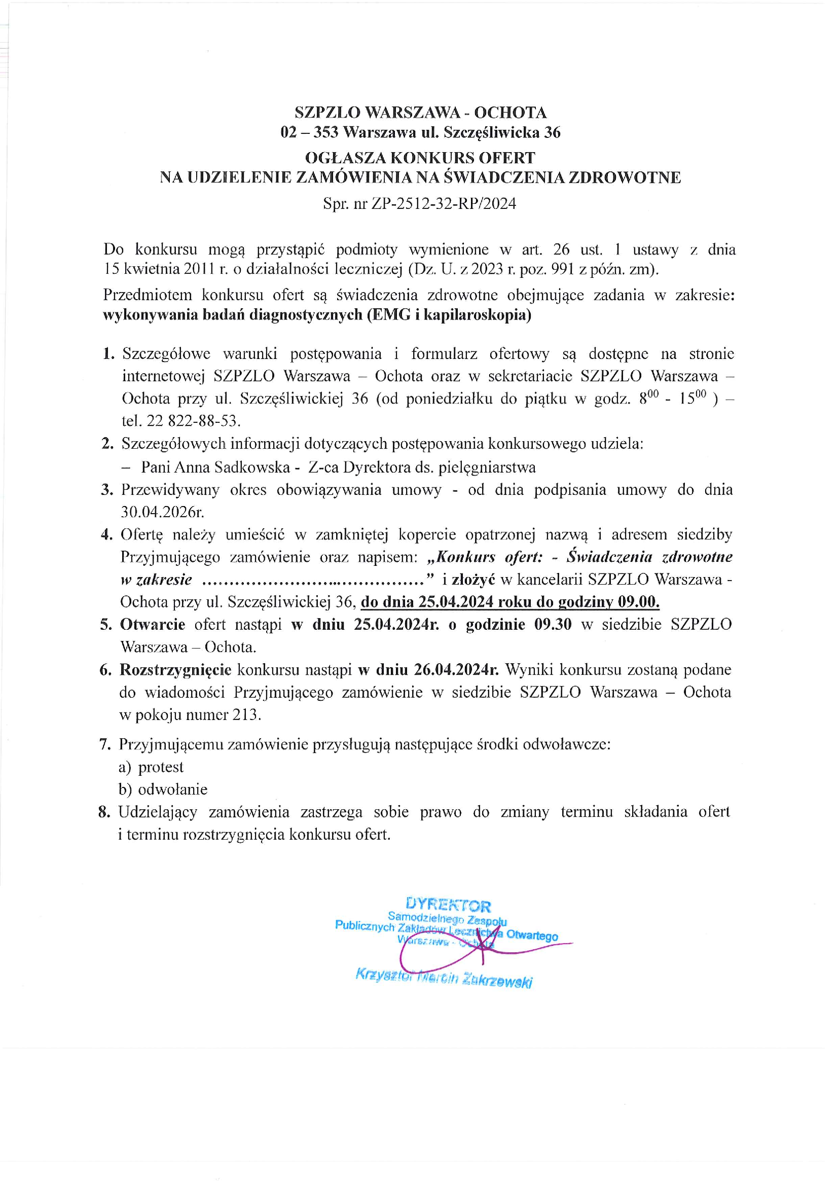 1. Ogłoszenie o konkursie