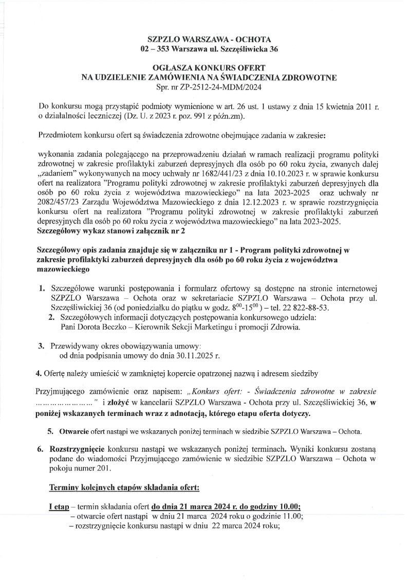 Lecznictwa Otwartego Warszawa-Ochota- Zał.do Umowy