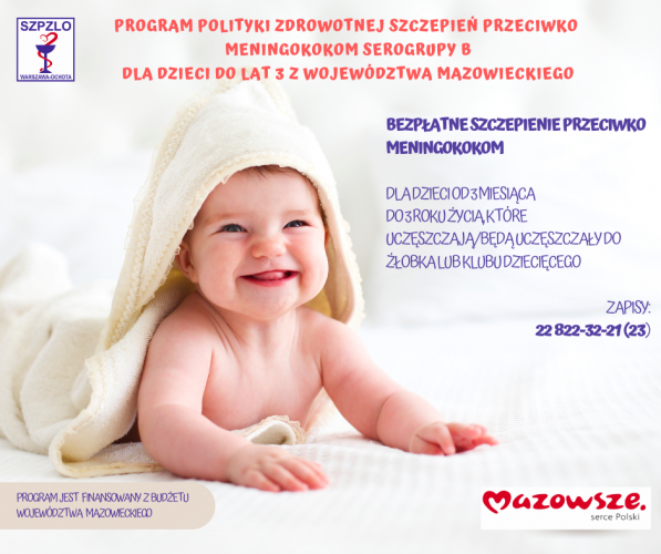 Rozpoczęliśmy realizację nowego programu szczepień – przeciwko meningokokom serogrupy B dla dzieci do lat 3 z województwa mazowieckiego.