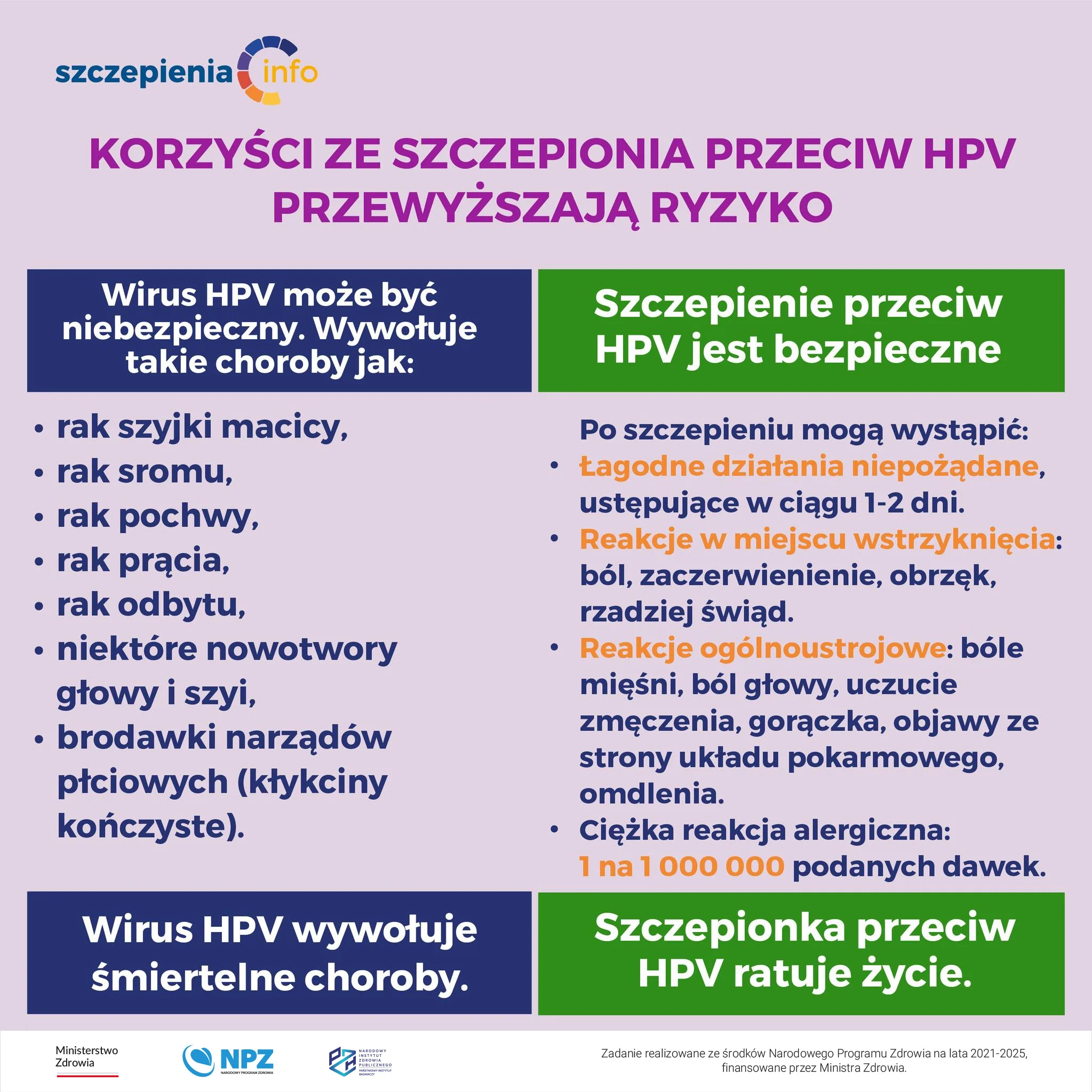 • Szczepienia chronią przed wirusem HPV, który odpowiada m.in. za nowotwory szyjki macicy i inne nowotwory zależne od HPV