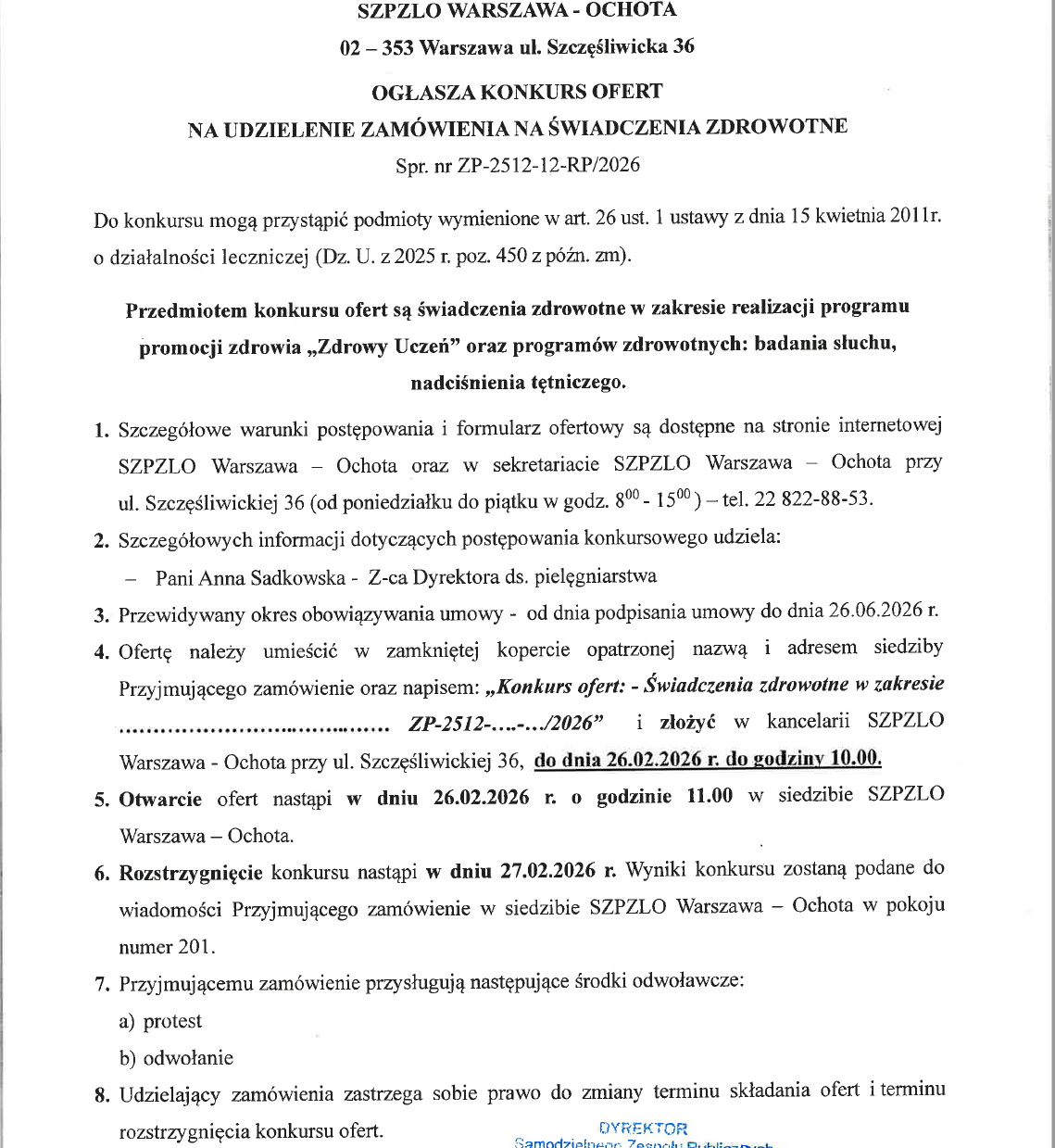 1. Ogłoszenie o konkursie
