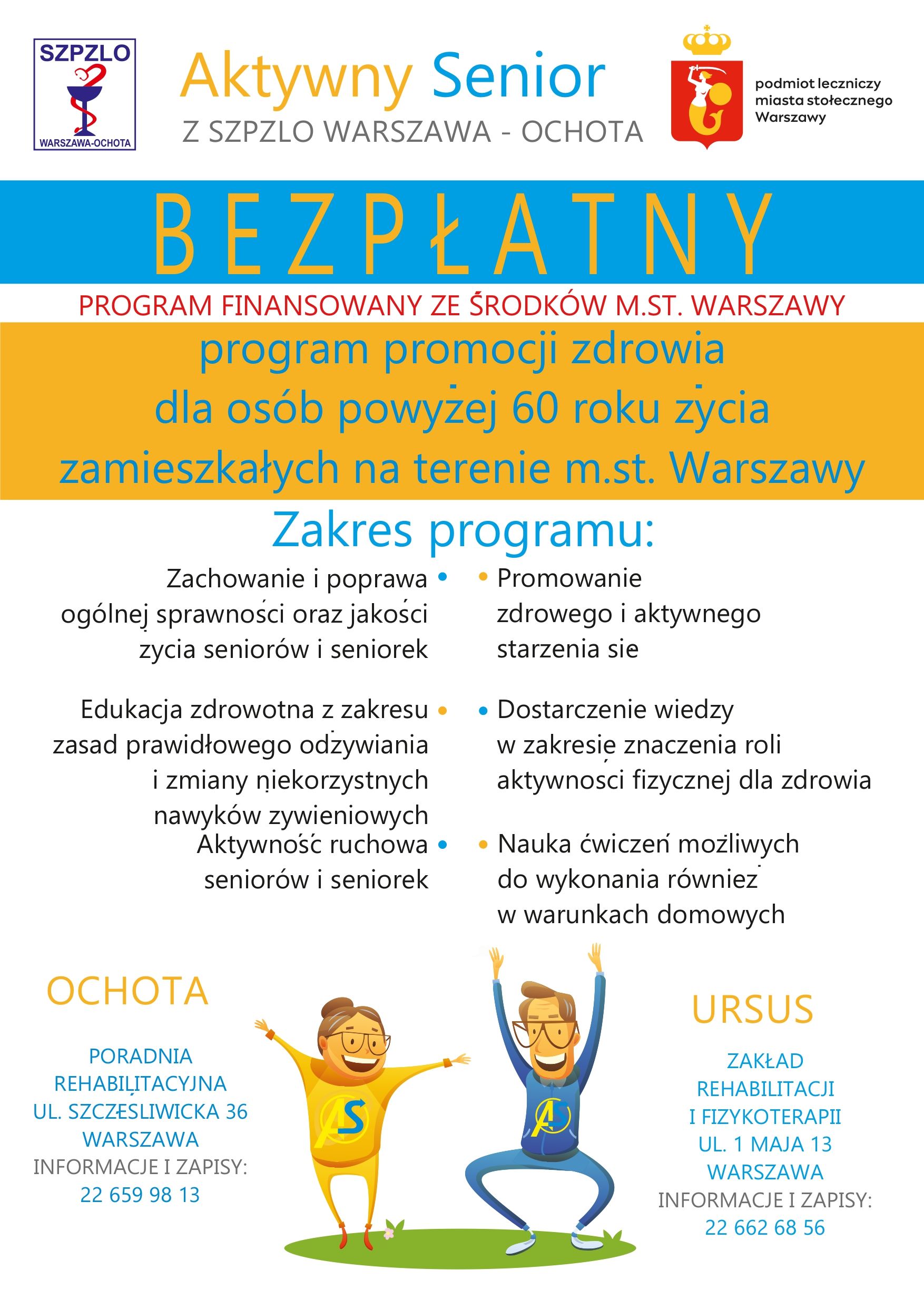 Celem programu jest zachowanie i poprawa ogólnej sprawności oraz jakości życia seniorów i seniorek - mieszkańców m.st. Warszawy