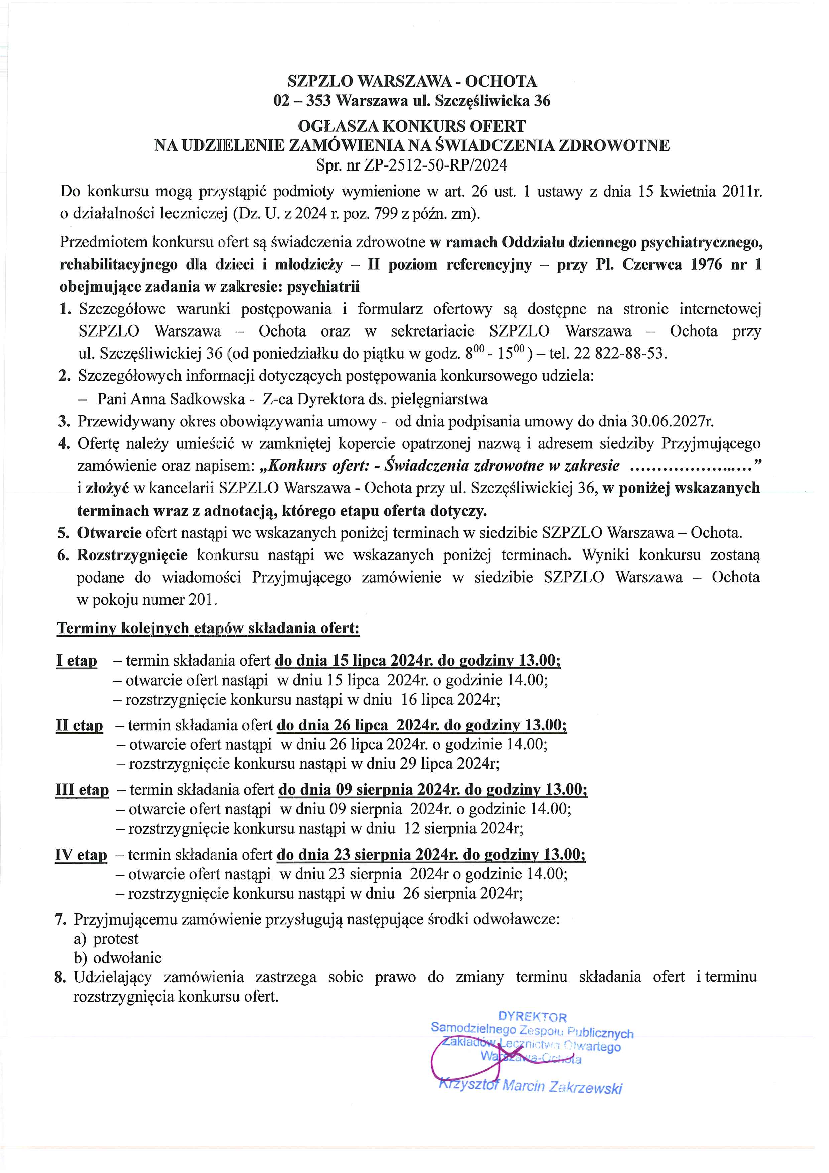 KONKURS OFERT NA UDZIELENIE ZAMÓWIENIA NA ŚWIADCZENIA ZDROWOTNE-CZP typu B, pkt. zgłoszeniowo-koordynacyjnego w zakresie: Pakiet I - psychiatrii Pakiet II - psychologii klinicznej Pakiet III - pielęgniarstwa psychiatrycznego (ZP-2512-51-RP/2024)