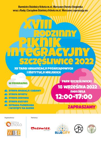 Po 2 latach przerwy do Parku Szczęśliwickiego powraca Rodzinny Piknik Integracyjny - jest to przegląd organizacji pozarządowych, instytucji oraz działalności prywatnych, które zaprezentują swoją ofertę pomocową, edukacyjną, kulturalną, promującą zdrowy styl życia oraz aktywność społeczną.