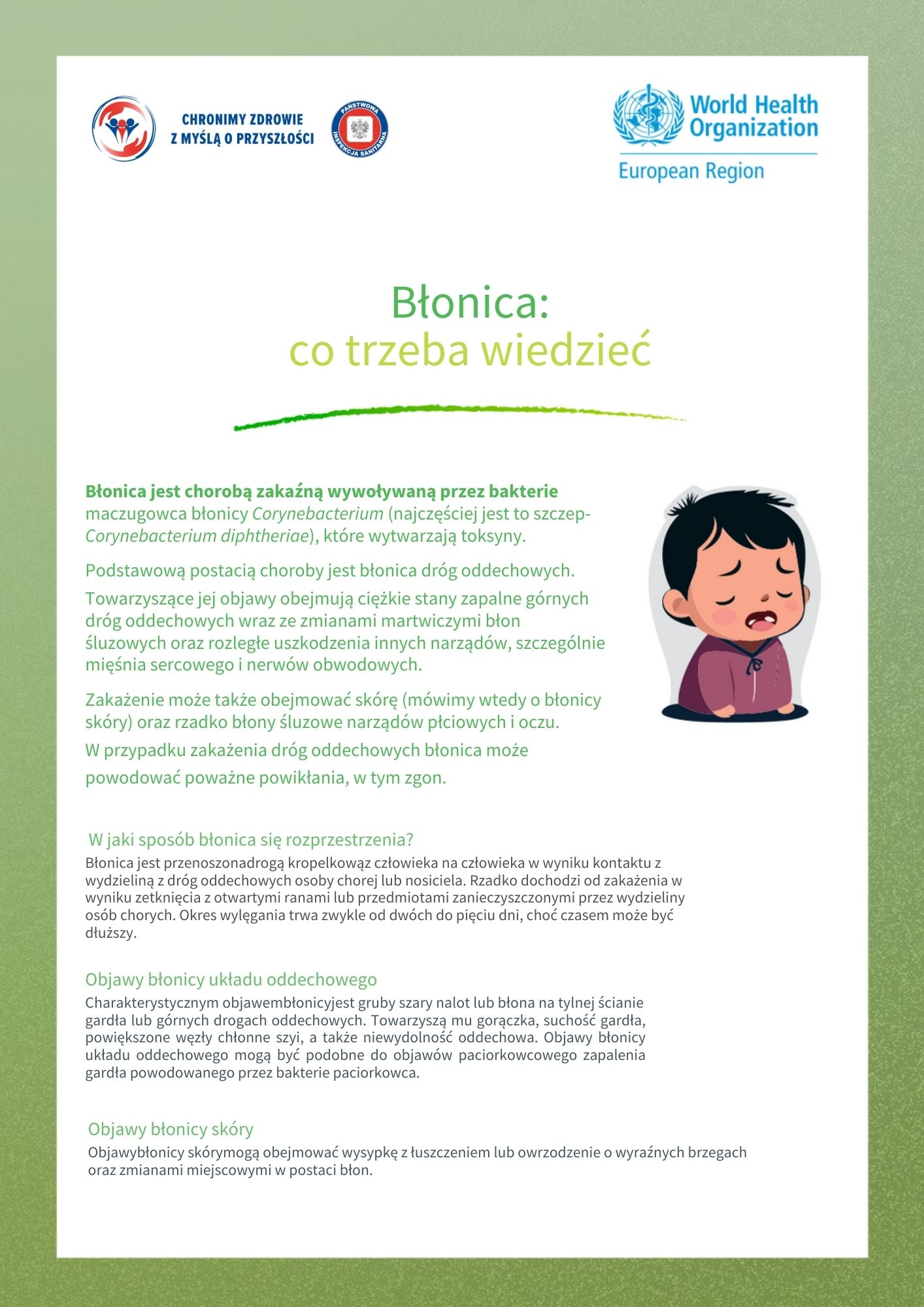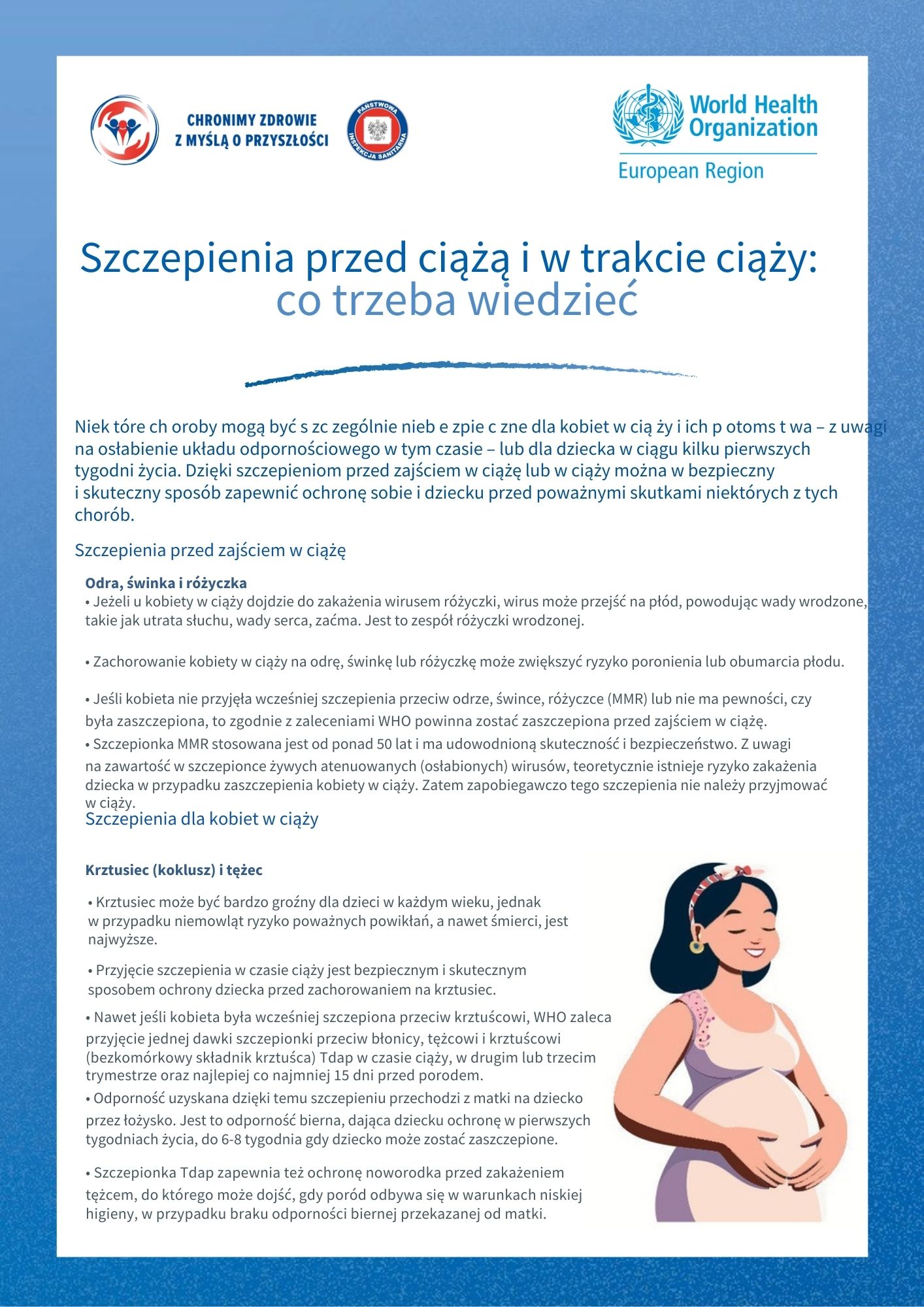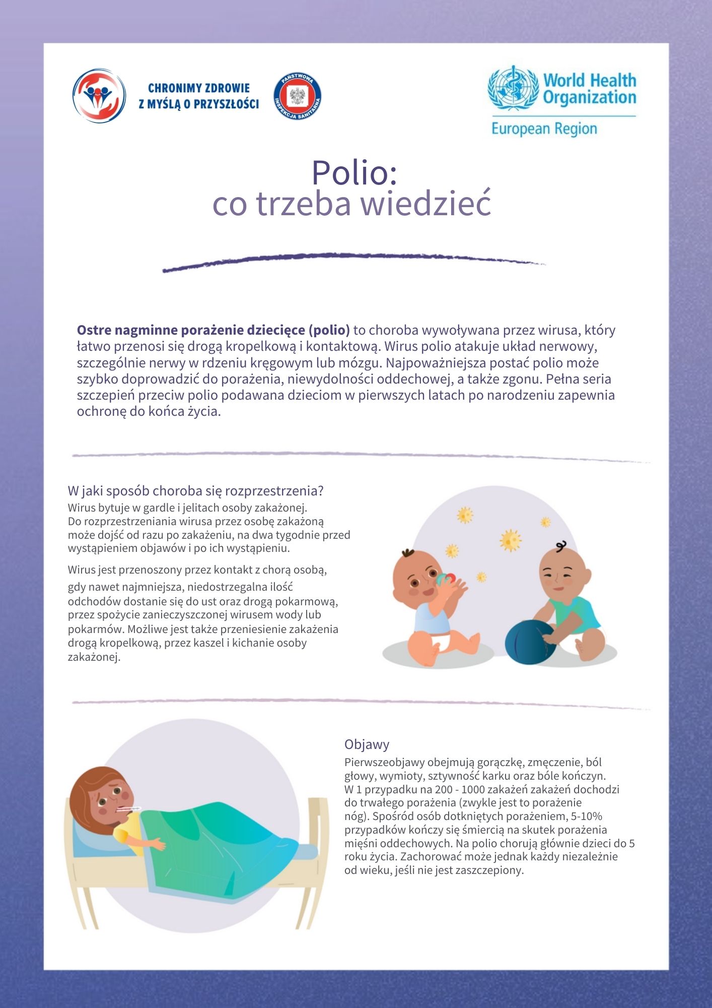 Szczepienia pomagają zapobiegać rozprzestrzenianiu się chorób zakaźnych i chronią osoby najbardziej narażone – dzieci, seniorów oraz osoby z obniżoną odpornością. Dzięki nim wiele niebezpiecznych chorób zostało ograniczonych lub niemal całkowicie wyeliminowanych. Sprawdź dostępne materiały edukacyjno-informacyjne i bądź świadomy – rzetelna wiedza to pierwszy krok do odpowiedzialnej troski o zdrowie swoje i innych.